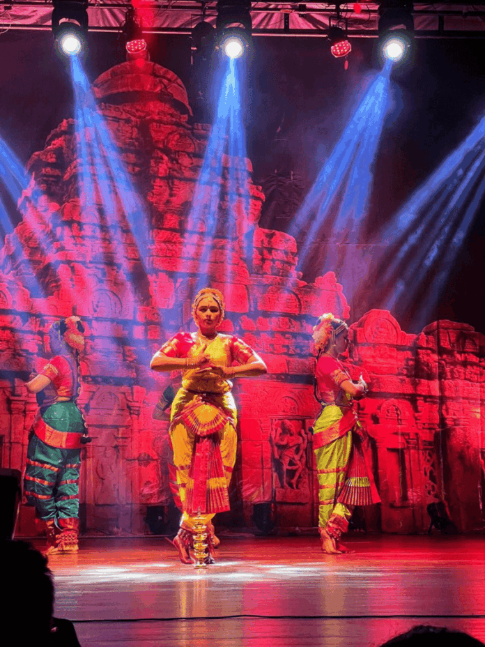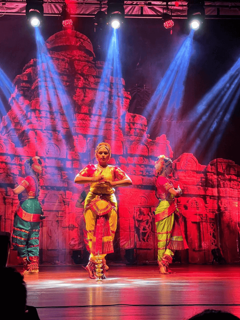 भरतनाट्यम में समभंग, अभंग, और त्रिभंग जैसी शारीरिक मुद्राएँ, जटिल फुटवर्क, और हस्तमुद्रओं के साथ प्रस्तुति दी जाती है। इसी भरतनाट्यम को मृदुला, रितिका, सिओना और अर्पिता ने पूरी शास्त्रीय गरिमा के साथ मंच पर जीवंत किया।