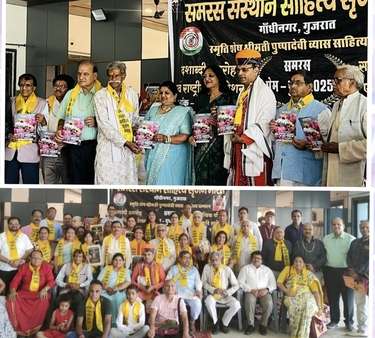 कोटा / हिन्दी को राष्ट्रभाषा बनाने और बच्चों में देशभक्ति की भावना जगाने के प्रयास हर स्तर पर किए जाने चाहिए। यह विचार शनिवार को भीलवाड़ा में वैश्विक  संस्था समरस संस्थान साहित्य सृजन भारत,गांधीनगर के दशाब्दी समारोह , श्रीमती पुष्पदेवी व्यास स्मृति साहित्य सम्मान और साहित्यिक परिचर्चा में मुख्य ट्रस्टी प्रेम शंकर व्यास एवं अन्य व्यक्ताओं ने व्यक्त किए। संस्थान के संस्थापक संयोजक मुकेश कुमार व्यास ‘ स्नेहिल ‘ ने वार्षिक प्रतिवेदन प्रस्तुत कर बताया मासिक काव्य गोष्ठियां, कार्यशालाएं , वैचारिक संगोष्ठियां और साहित्यकार सम्मान आदि कार्यक्रम आयोजित किए जाते हैं। संस्थान का एक मात्र उद्देश्य हिंदी भाषा को बढ़ावा देना, बिना किसी भेदभाव के सब को साथ ले कर चलना और समाज में समरसता फैलाना है। स्वागत उद्बोधन में राष्ट्रीय अध्यक्ष डॉ. शशि जैन ने सभी का स्वागत कर बताया कि 10 वर्ष पूर्व 8 सदस्यों से शुरू की गई संस्था में देश के 18 राज्यों सहित अमेरिका, केनिया, दुबई की इकाइयों में 32 हजार सक्रिय सदस्य हैं।गुजरात प्रांत के अध्यक्ष डॉ. विजय प्रताप सिंह ने अगले वर्ष वार्षिक अधिवेशनअहमदाबाद में आयोजित करने की घोषणा की ।