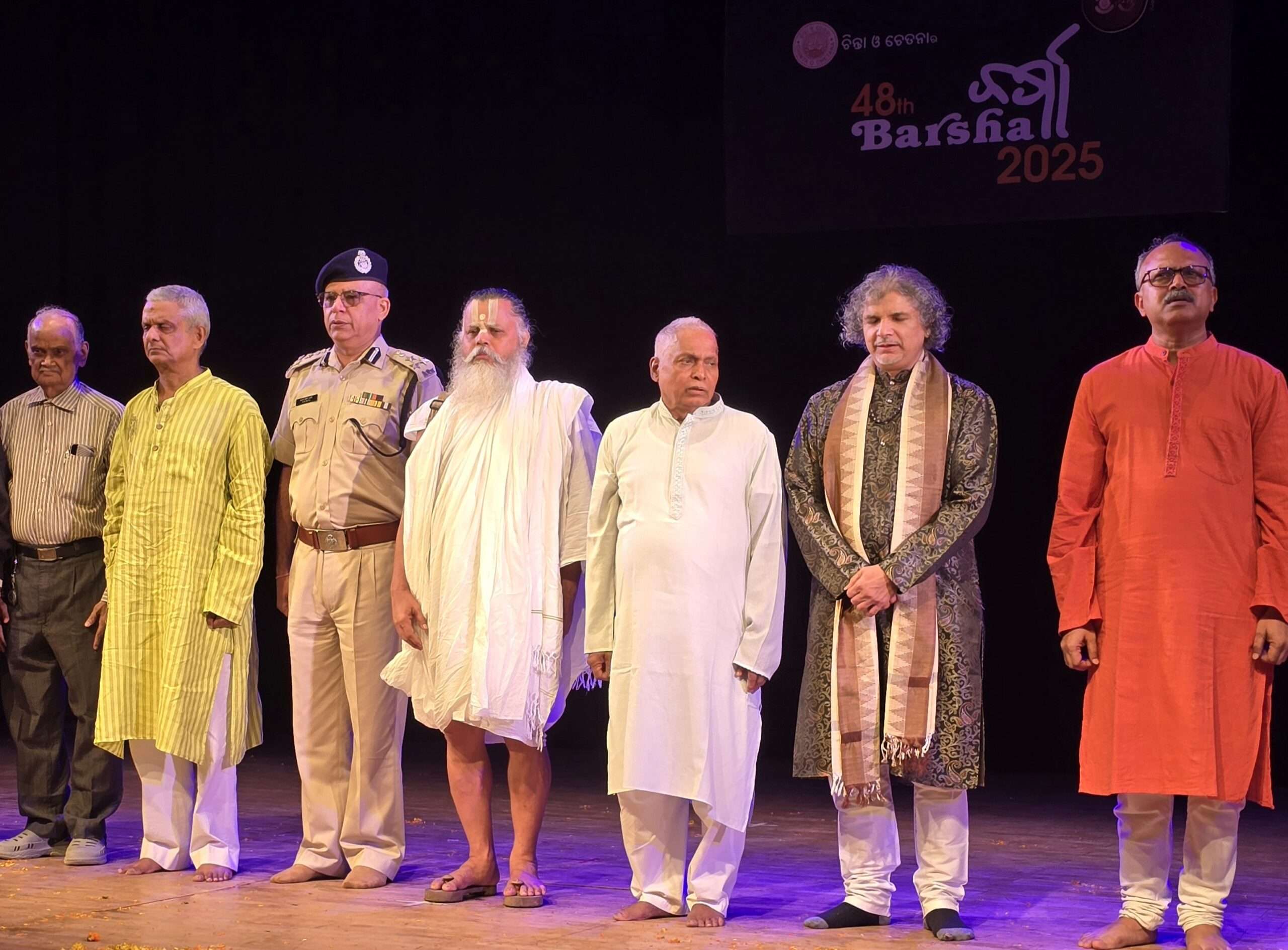 भुवनेश्वर। स्थानीय रवींद्रमण्डप में 25 अगस्त को सायंकाल चिंता-व-चेतना नामक संस्था के सौजन्य से 48वां तीन दिवसीय वर्षा महोत्सव संत बाबा रामनारायण दास आदि विशिष्ट मेहमानों के परम्परागत दीपप्रज्ज्वलन के साथ उद्घाटित हो गया। कार्यक्रम का शुभारंभ ओडिशी नृत्यांगना सुजाता महापात्र के मंगलाचरण तथा ओडिशी नृत्य के साथ हुआ। गौरतलब है कि जिस वर्षा ऋतु की चर्चा कालिदास की रचनाओं में वर्णित है ठीक उसी प्रकार काली घटाओं को देखकर मोर का नृत्य करने तथा मेढकों के टर्रटर्र की आवाज के साथ प्रस्तुति देती हुई नृत्यांगना सुजाता महापात्र ने अपने अभूतपूर्व नृत्य प्रदर्शन में किया।