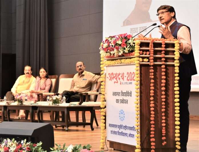 एक अन्य सत्र में ‘पत्रकारिता साहित्य एवं संस्कृति’ विषय पर पद्मश्री विजयदत्त श्रीधर ने कहा कि भाषा के लिए हमारी निर्भरता तकनीक पर बढ़ना बहुत अच्छा नहीं है। पत्रकारिता में लोकमंगल की भावना को महत्वपूर्ण बताते हुए उन्होंने कहा कि भाषा पत्रकार का प्रमुख औजार है इसलिए मीडिया के लोगों में भाषा की अच्छी समझ आवश्यक है। इसके बाद इसी विषय पर इंदिरा गांधी राष्ट्रीय कला केंद्र, नई दिल्ली के सचिव डॉ. सच्चिदानंद जोशी ने कहा कि एक भारतीय बतौर हमारी पहली पहचान हमारी संस्कृति है। उन्होंने कहा कि भारत की ज्ञान परंपरा और संस्कृति बहुत समृद्ध है और यह पूरे विश्व को प्रभावित कर सकती हैं। डॉ. जोशी ने कहा कि यह युग मोबाइल का नहीं बल्कि भारत का युग है।