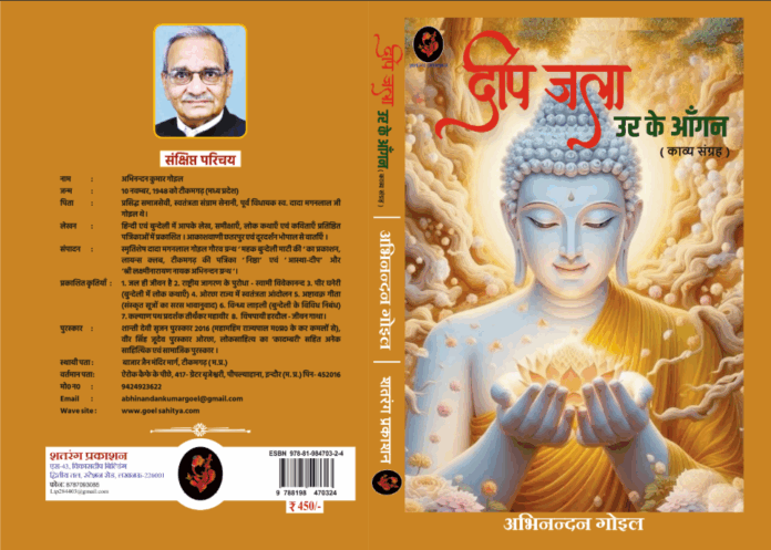 आलोच्य कृतिदीप जला उर के आँगनकाव्य संग्रह बुन्देलखण्ड के प्रख्यात साहित्यकार श्री अभिनन्दन कुमार गोइल की सद्यः प्रकाशित कृति है ; जिसमें साहित्य की विभिन्न काव्य धाराओं में पाठक अवगाहन कर सकता है। यह कृति विविधता में एकात्मकता का साक्षात्कार कराती है। कविता में तीन तत्व प्रधान माने जाते है ; यथा छन्द, गेयता और समग्र प्रभावकविवर श्री गोइल इन कसौटियों पर सिद्धता प्राप्त करने में सफल हुए हैं।