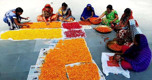 इसी तरह कबीरधाम जिले की जय गंगा मईया महिला स्व-सहायता समूह द्वारा छत्तीसगढ़ के खजुराहो के नाम से विख्यात श्री भोरमदेव मंदिर में श्रद्धालुओं द्वारा चढ़ाए गए फूलों से हर्बल गुलाल बनाया जा रहा है। इनके द्वारा अब तक तैयार 4 क्विंटल गुलाल को बाजार में बिक्रय कर 52 हजार रूपए की आय अर्जित कर ली गई है। मुख्यमंत्री श्री बघेल ने जय गंगा मईया महिला स्व-सहायता समूह द्वारा 9 अलग-अलग रंगों में तैयार किए जा रहे हर्बल गुलाल को भी सराहनीय बताया। श्री भोरमदेव मंदिर में श्रद्धालुओं द्वारा प्रतिदिन लगभग 200 से 300 किलो फूल चढ़ाया जाता है, जो सप्ताह के अंत में 400 से 500 किलो तक हो जाता है। उमंग और उल्लास के त्यौहार होली में अब लोगों को हर्बल गुलाल सहजता से सस्ते कीमत पर उपलब्ध होगा। गौरतलब है कि हर्बल गुलाल का स्वास्थ्य पर कोई दुष्प्रभाव नहीं पड़ता है, बल्कि यह ठण्डक प्रदान करता है। इसके आंखों में चले जाने से कोई जलन नहीं होता है। इसके अलावा त्वचा तथा बालों को कोई नुकसान नहीं पहुंचता है। हल्दी, गेंदा, गुलाब, चुकन्दर, पालक, अनार जैसे प्राकृतिक पुष्प तथा फलों से बने जैविक अथवा हर्बल गुलाल स्वास्थ्य के लाभकारी है।