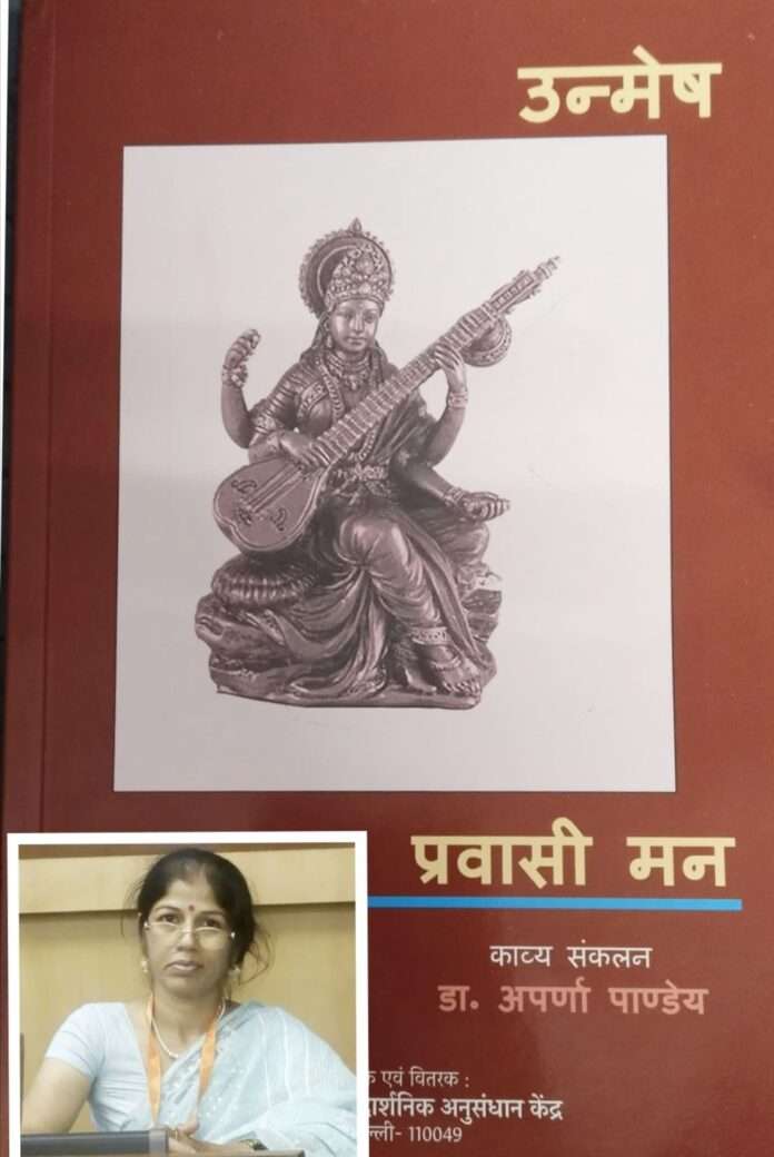 कोटा की साहित्यकार डॉ. अपर्णा पाण्डेय की काव्य संकलन कृति “उन्मेष प्रवासी मन” कविताओं के संकलन का एक ऐसा पुष्प गुच्छ है जो किसी एक विषय पर केंद्रित न हो कर धार्मिक, आध्यात्मिक, सामाजिक, प्रेम, प्रकृति सौंदर्य आदि प्रसंगों को समेटे हुए विविधवर्णीय और बहुमुखी है। कहने को तो यह एक कृति है पर वास्तव में दो कृतियों का प्रतिनिधित्व करती है। दो खंडों में विभक्त कृति में लेखिका ने स्वयं दो बार मन की बात कही है। एक भाग में विविध विषयों पर स्वस्फूर्त 29 रचनाएं हैं तो दूसरे भाग में 31 ऐसी कविताएं हैं जो उनके ढाका प्रवास के दौरान सृजित कविताओं का दर्पण है। साथ में 9 ग़ज़ल भी इस खंड में शामिल हैं। इनकी कविताओं में मानवता, देश प्रेम, आशा, विश्वास, आनंद, चिंता, पीड़ा, विरह, मिलन के भाव इन्हें कुशल शब्द शिल्पी बना देते हैं।