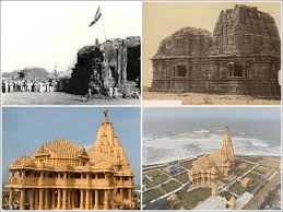 सर्वप्रथम एक मंदिर ईसा के पूर्व में अस्तित्व में था जिस जगह पर द्वितीय बार मंदिर का पुनर्निर्माण सातवीं सदी में वल्लभी के मैत्रक राजाओं ने किया। आठवीं सदी में सिन्ध के अरबी गवर्नर जुनायद ने इसे नष्ट करने के लिए अपनी सेना भेजी। प्रतिहार राजा नागभट्ट ने 815 ईस्वी में इसका तीसरी बार पुनर्निर्माण किया। इस मंदिर की महिमा और कीर्ति दूर-दूर तक फैली थी। ‘‘मंदिर की सेवा के लिए 10 हजार गांव लगे थे. मंदिर में 100 पुजारी, 500 नर्तकियां तथा 200 गायक दर्शकों को भगवान के गीत सुनाया करते थे। मंदिर की अपार सम्पत्ति से ललचाकर महमूद अजमेर के रास्ते सोमनाथ के द्वार पर जा पहुंचा।